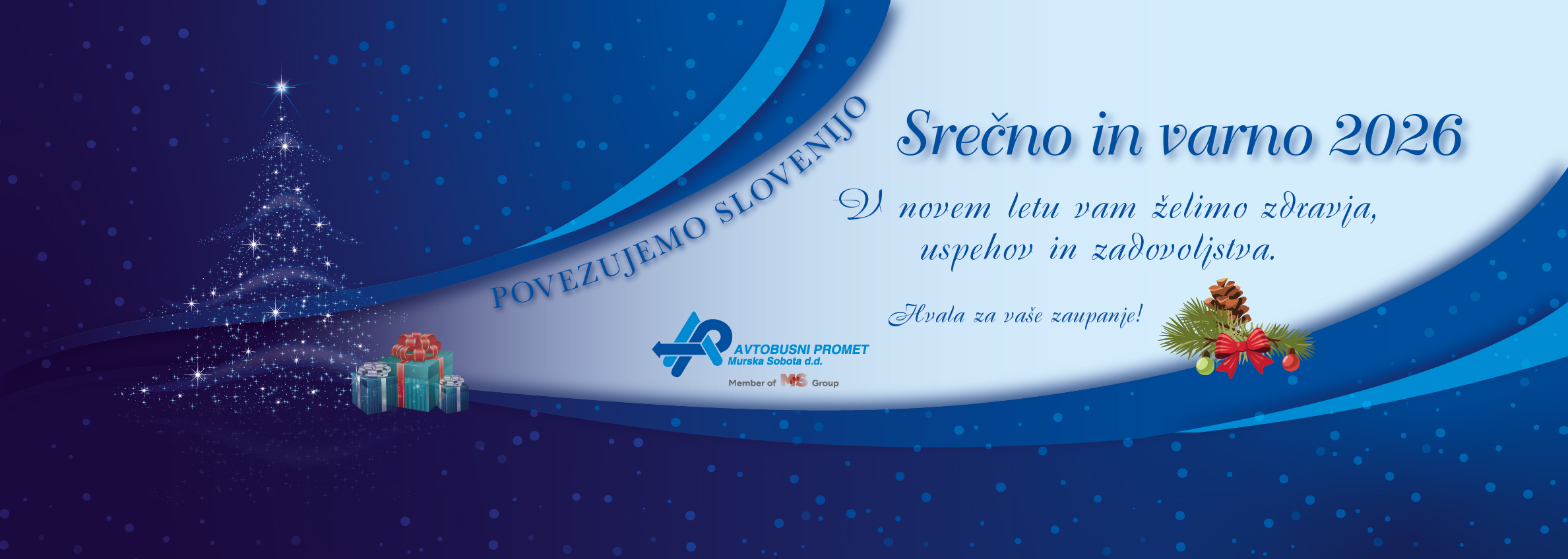 Spoštovani potniki! Obveščamo vas, da bo blagajna dne 24. 12. 2025 in 31. 12. 2025 obratovala od 6:00 do 13:00 ure. Hvala za razumevanje! Želimo vam prijetne praznike in vse dobro v novem letu...